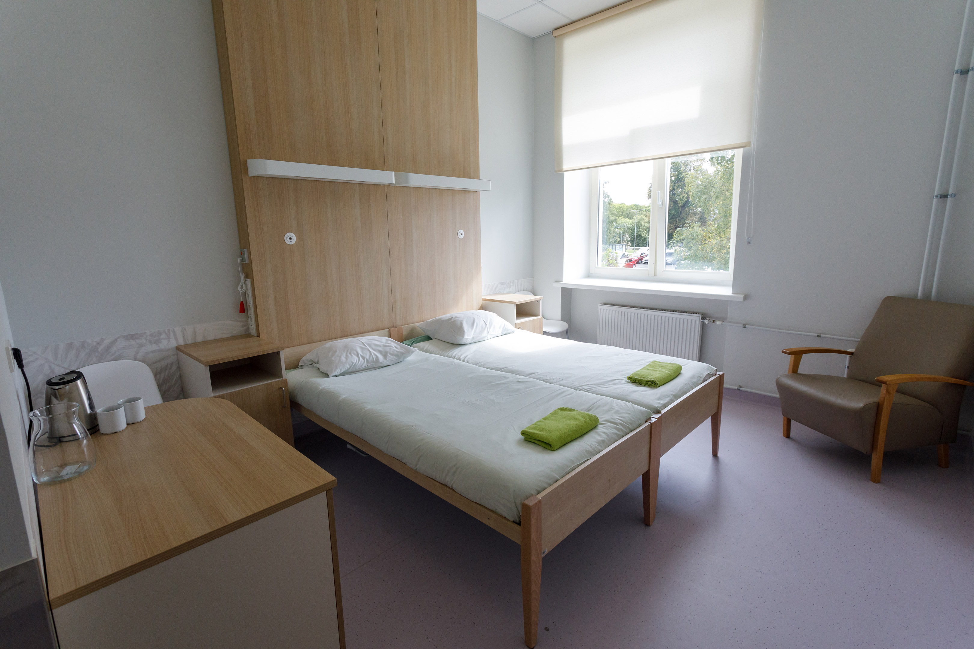 On the second floor, there are five, and on the fifth floor, there are 18 family wards with all amenities, one of which is a larger ward with a leisure corner*.