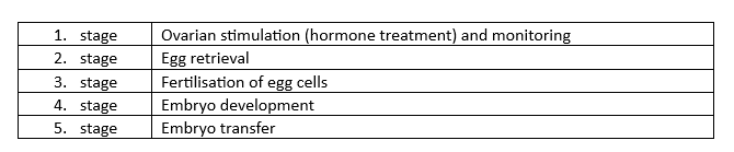 There are two main types of treatment protocols used for preparation: a short protocol using a gonadotropin-releasing hormone antagonist or a long protocol using a gonadotropin-releasing hormone agonist. The doctor will decide which protocol is more suitable for the patient. In the long treatment protocol, hormonal stimulation of the ovaries starts on day 21-22 of the menstrual cycle (a week before the expected menstruation) and the egg cell fertilisation procedure itself takes place after about a month. In the short treatment protocol, ovarian stimulation starts at the beginning of the menstrual cycle (days 2 to 5 of the cycle) and the egg cell fertilisation procedure takes place after about two weeks.